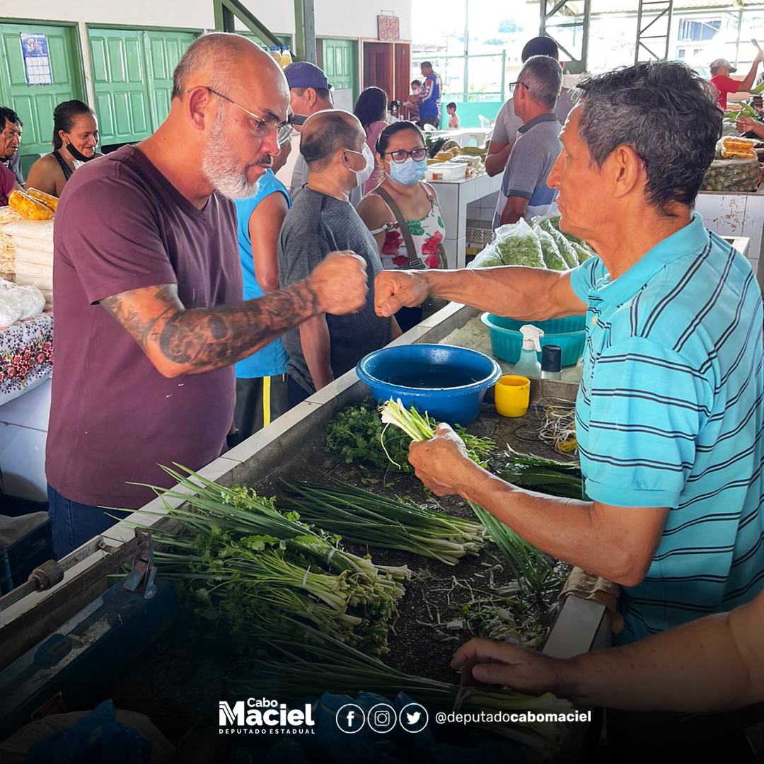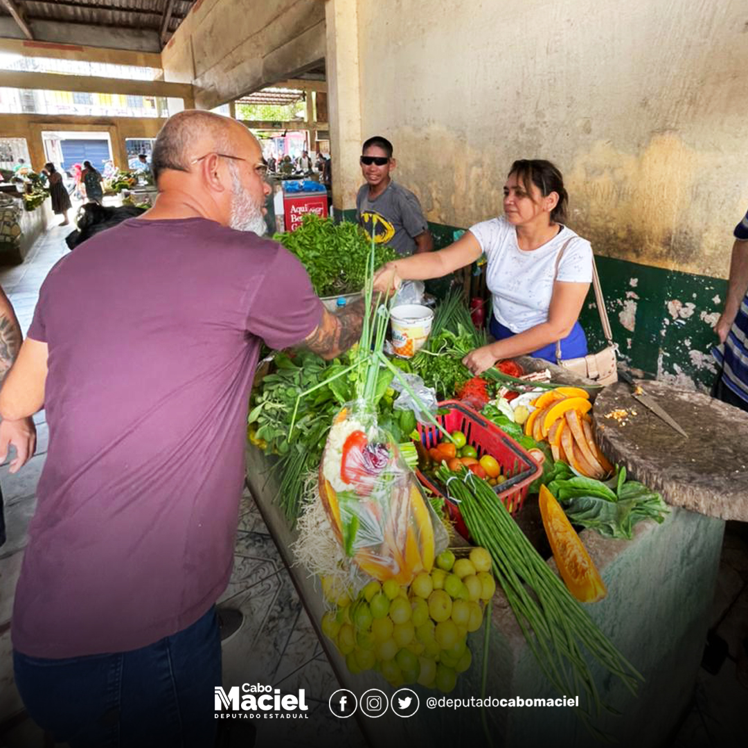 Cabo Maciel ainda em Itacoatiara esteve realizando uma visita na Feira do Produtor Rural, onde cumprimentou cada feirante e ouviu suas demandas.