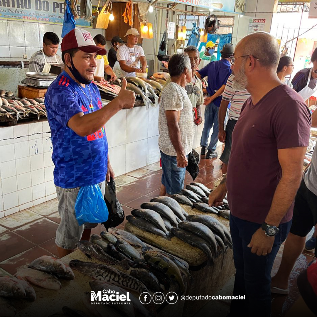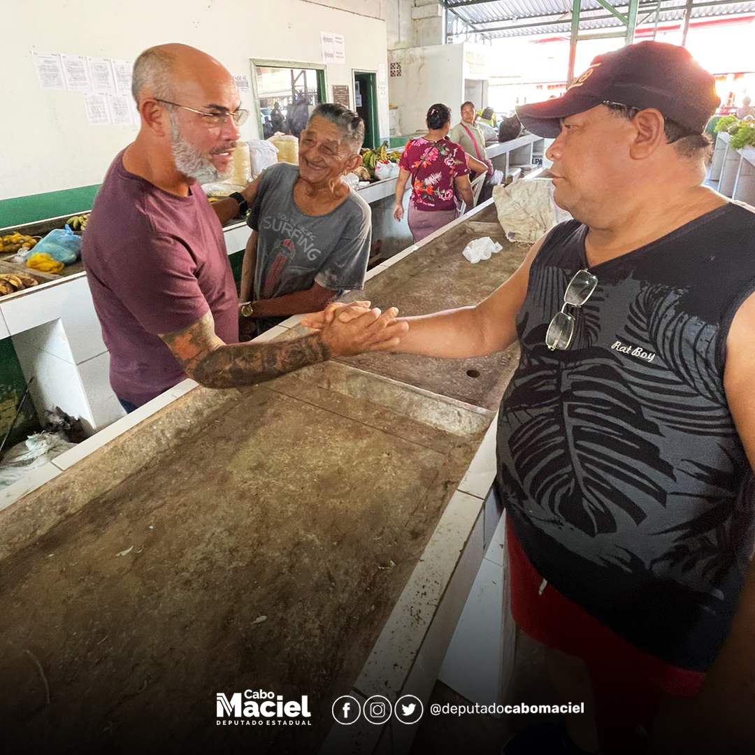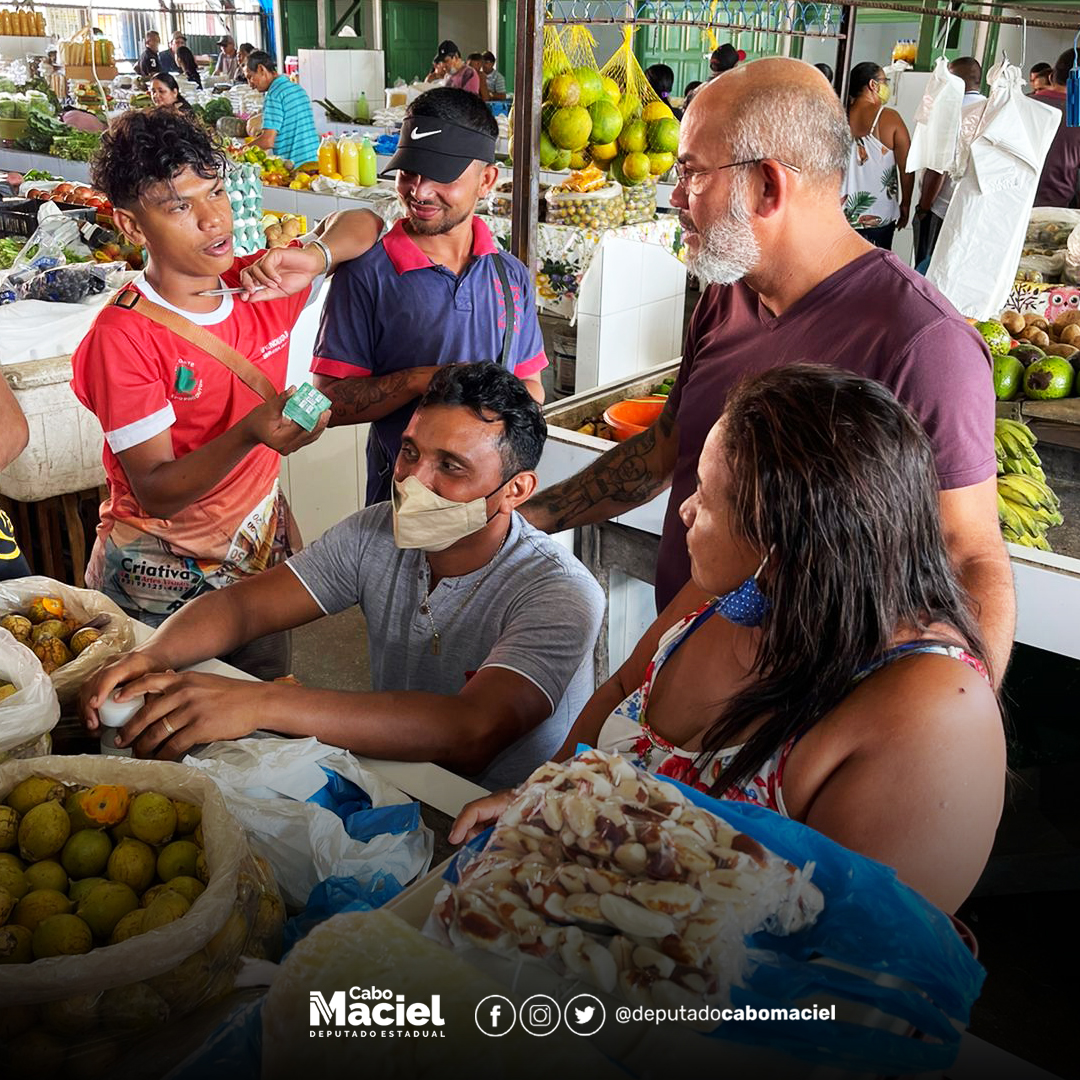 Seguindo suas atividades, o Deputado Cabo Maciel esteve junto com seu filho José Paulino, realizando uma visita no Mercado Municipal Gesta Filho, em Itacoatiara.