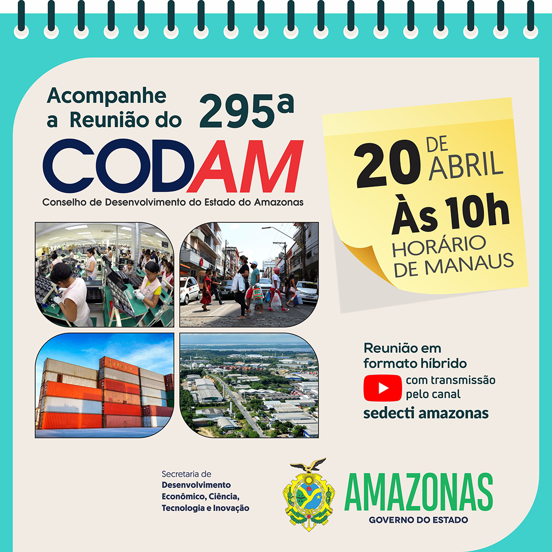 Acontece nesta quarta-feira (20/04), a 295ª Reunião Ordinária do Conselho de Desenvolvimento do Estado do Amazonas (Codam), que irá avaliar o volume de cerca de R$ 2,8 bilhões em projetos de investimentos voltados para o Estado. A reunião é organizada pela Secretaria de Estado de Desenvolvimento Econômico, Ciência, Tecnologia e Inovação (Sedecti).
