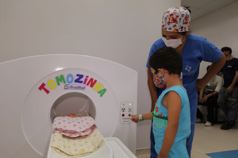 “A gente pensa ‘o que mais pode trazer medo? É o desconhecido. Então vamos treinar e mostrar para as crianças o que elas vão passar no exame de tomografia e ressonância, para quando chegarem ao exame real não terem tanta dúvida, medo”, afirma o diretor.