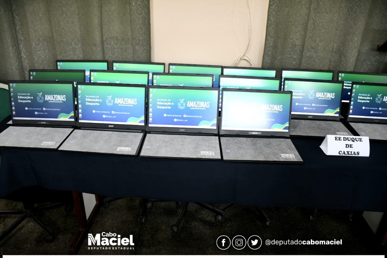As três Escolas contempladas com a Emenda Parlamentar do Deputado Cabo Maciel, foram a Escola Estadual Duque de Caxias (gestora Jane), Escola Estadual Raimundo Carvalho (gestora Marcelle) e Escola Estadual Almirante Tamandaré (gestor Jorge), que receberam 20 notebooks cada. O recurso foi repassado via Seduc, no valor de 1.050.000,00 milhão, contemplando além das três escolas do município outras 18 em 10 municípios do interior do Estado.