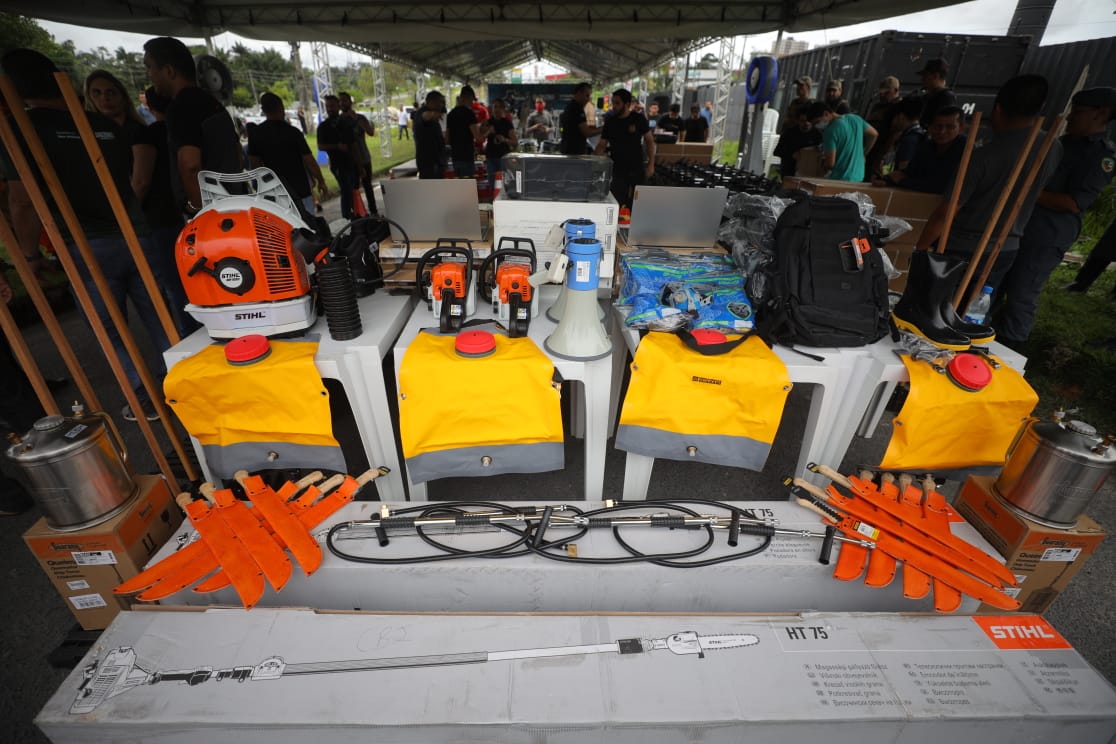 Ao todo, 5.163 itens – entre motoserras, abafadores, mochilas extintoras, sopradores, roçadeiras, Equipamentos de Proteção Individual (EPI) e outros – foram entregues ao Corpo de Bombeiros do Amazonas, por meio da Secretaria de Segurança Pública do Estado do Amazonas (SSP-AM). Um investimento total de R$1.704.788,64.