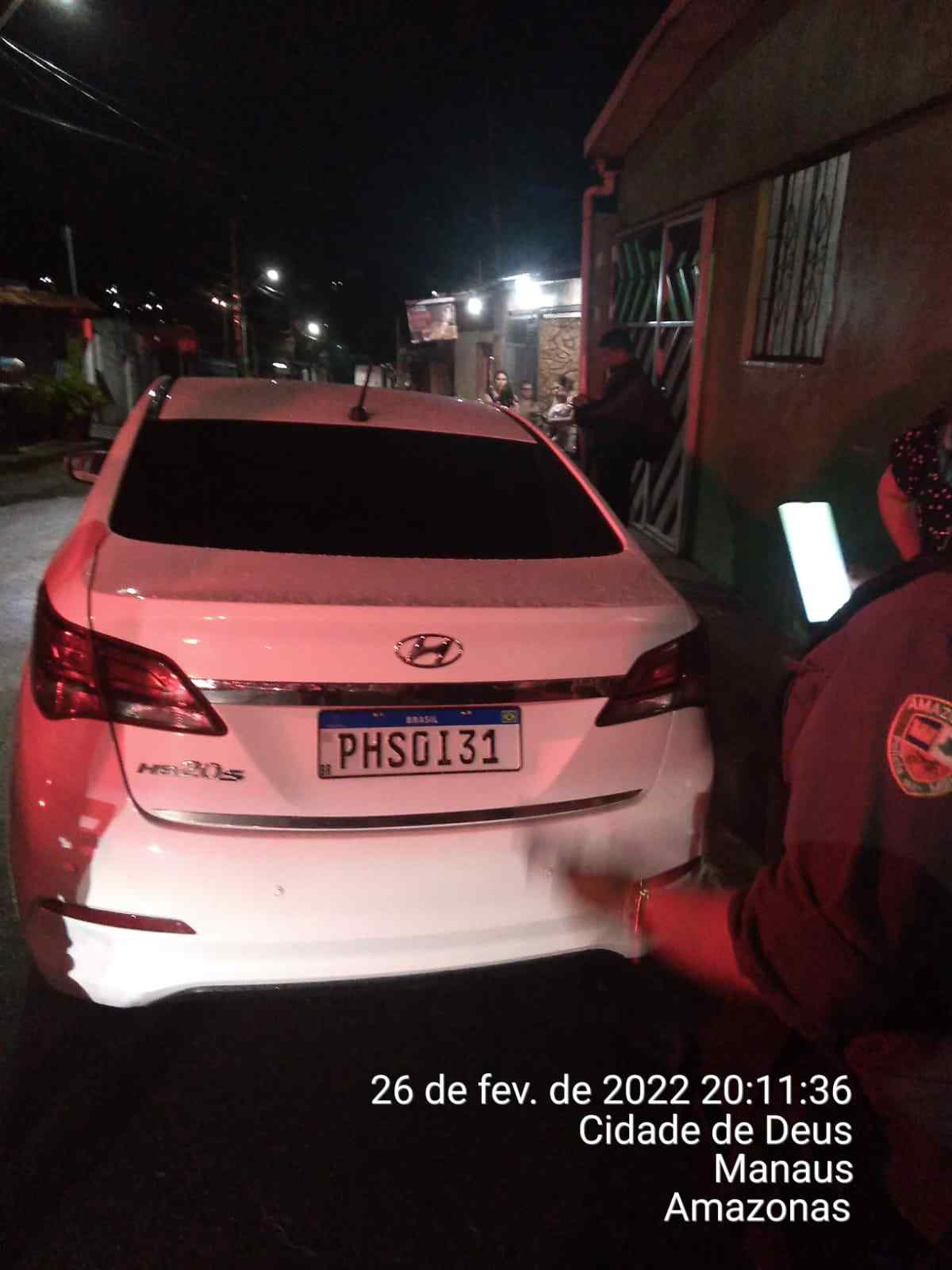 No sábado, por volta das 20h, após acionamento, policiais militares na viatura 7218, da 13ª Cicom, recuperaram um veículo modelo Hyundai HB 20 Sedan, de cor branca e placas PHS0I31, que estava em situação de abandono na rua 7 da comunidade Fazendinha, no bairro Cidade de Deus, zona norte.