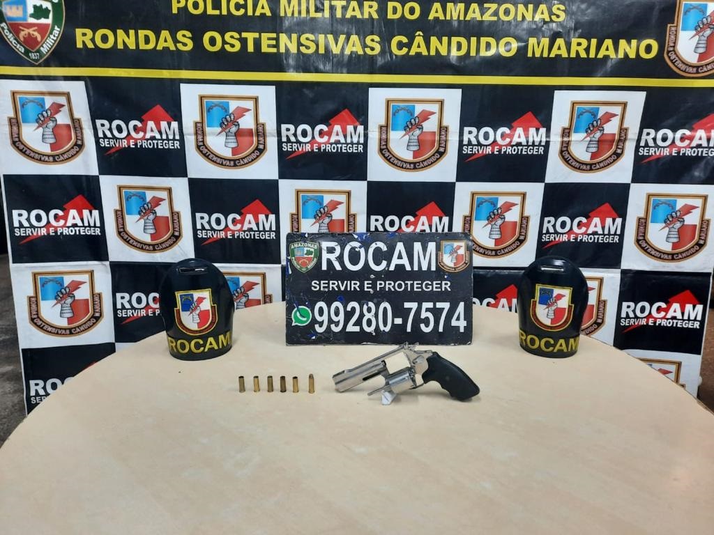Policiais militares da Ronda Ostensiva Cândido Mariano (Rocam) apreenderam, na noite de segunda-feira (18/04), arma de fogo e munições, na comunidade Nova Vitória, bairro Distrito Industrial 2, zona leste da cidade.