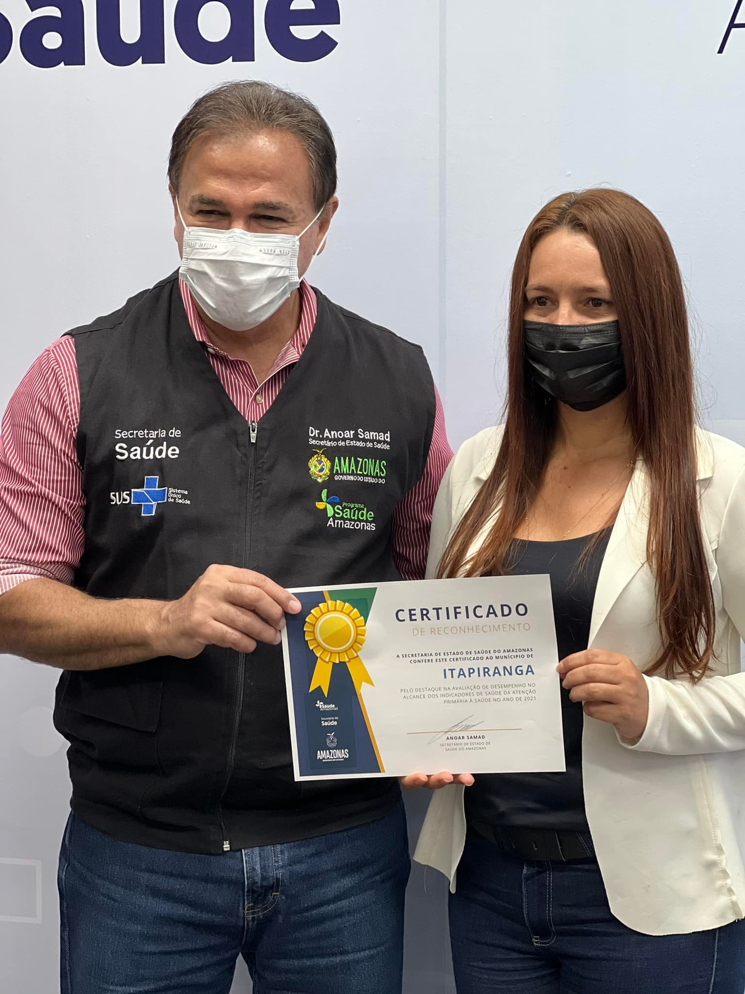 A Prefeita Denise Lima, recebeu o certificado de reconhecimento pelo destaque de seu trabalho no município de Itapiranga (AM), no Previne Brasil. Este certificado representa o bom desempenho da gestão, nas estratégias executadas na Atenção Básica, para o alcance dos indicadores estabelecidos pelo Ministério da Saúde.A proposta tem como princípio a estruturação de um modelo de financiamento focado em aumentar o acesso das pessoas aos serviços da Atenção Primária e o vínculo entre população e equipe, com base em mecanismos que induzem à responsabilização dos gestores e dos profissionais pelas pessoas que assistem. E, baseados nesta responsabilidade, que executamos estratégias e meios para chegar na oferta de um bom serviço aos nossos usuários.