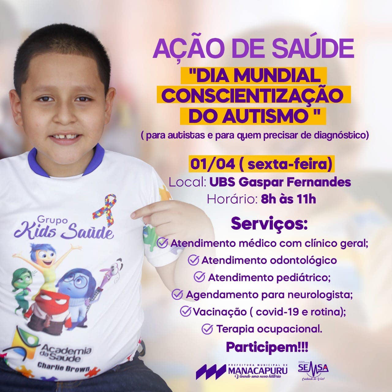 A prefeitura do município de Manacapuru (86 km), na Região Metropolitana de Manaus, irá realizar na próxima sexta-feira (01), uma Ação de Saúde em alusão ao dia mundial de conscientização ao autismo, para todos os Autistas e para quem precisar de diagnóstico.
