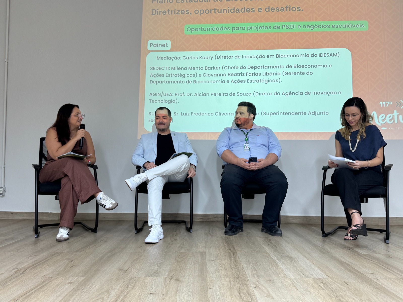A Secretaria de Desenvolvimento Econômico, Ciência, Tecnologia e Inovação (Sedecti) apresentou, nesta quinta-feira (16/04), como o Plano Estadual de Bioeconomia do Amazonas pode gerar oportunidades concretas de negócios e investimentos no estado. O plano foi detalhado  pela chefe do Departamento de Bioeconomia e Ações Estratégicas, Milena Barker, durante o painel principal do 117º Meetup Jaraqui Valley, promovido pelo Instituto de Conservação e Desenvolvimento Sustentável da Amazônia (Idesam), com o tema ‘Da Política Pública ao Projeto’.